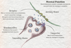 • Transporters—proteins that transport or “reuptake” neurotransmitter molecules back to the sending neuron once the message is completed (SSRIs, or Selective Serotonin Reuptake Inhibitors, work to inhibit this action)