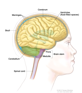 The brain is the control center of the body and truly the most complex structure in the known universe. An adult brain consists of approximately 86 billion neurons (nerve cells) that communicate with each other across almost 500 trillion connections. Although it weighs only about 3 pounds, the brain uses about 20% of the body’s oxygen and about 25% of the body’s glucose. The brain is so important to the body that it has been carefully protected and supported. First, it is encased by the skull which, if placed on the ground, can withstand pressure of as much as 3 tons. Second, it has several thick membranes (cranial meninges), with the outermost of these membranes being a two-layered, tough fibrous membrane called dura mater, which, literally translated from Latin, means “hard mother” (our word “matter” comes from Latin materia). Third, the cerebrospinal fluid provides protection for the brain and the spinal cord while also transporting nutrients to and the waste from the central nervous system. Fourth, the brain is protected by the blood-brain barrier which limits the material that can pass from the blood to the cells of the brain and spinal cord.